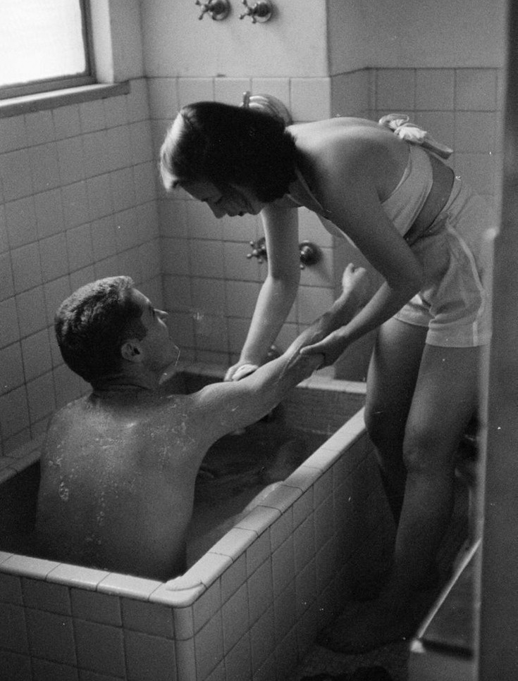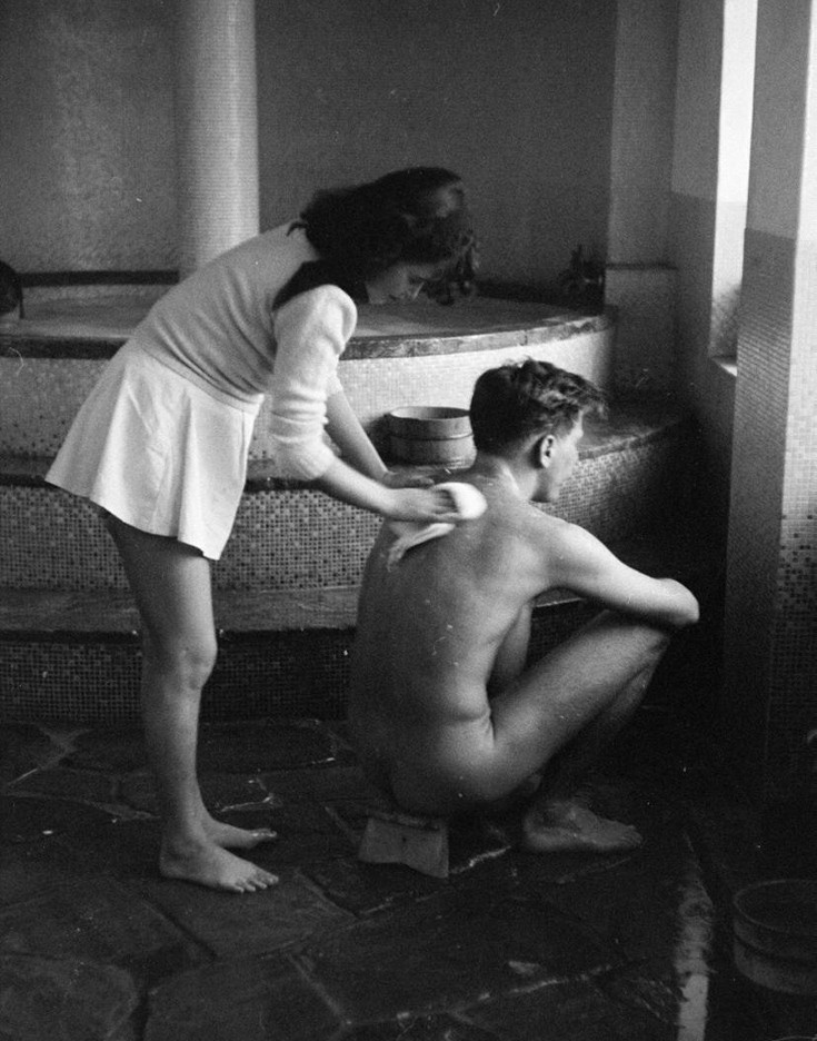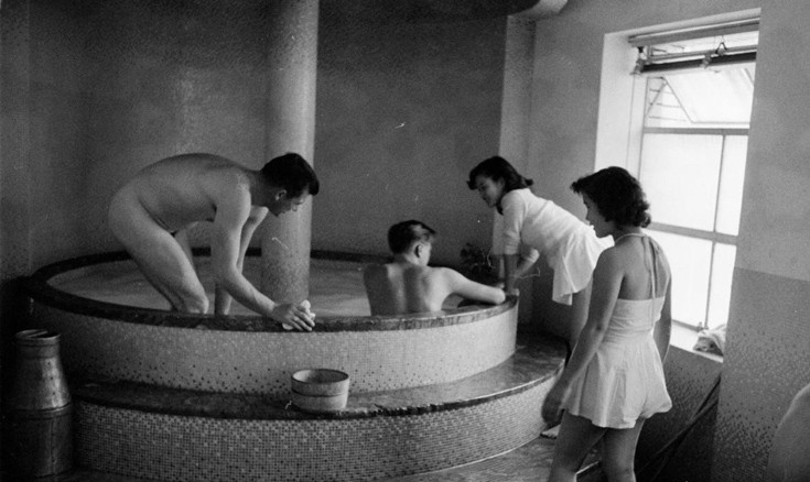 Προσδεθείτε, το ταξίδι στο χρόνο αρχίζει και μεταφερόμαστε στην Ιαπωνία, στα δημόσια λουτρά του 1951 εκεί όπου «τρύπωσε» ο φωτογράφος του Life, Michael Rougier. Ήταν λίγο πριν λήξει η συμμαχική κατοχή με τη Συνθήκη του Σαν Φρανσίσκο το 1952, και τα λουτρά ήταν ιδιαίτερα δημοφιλή στους δυτικούς, καθώς γέμιζαν με ενθουσιώδεις Αμερικανούς αξιωματικούς.