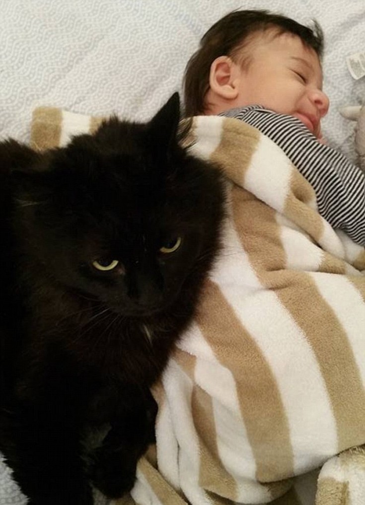 «Είναι πολύ προστατευτική μαζί του», εξηγεί η Liel. «Δεν επιτρέπεται στις γάτες να μπουν στην κούνια του όταν εκείνος κοιμάται μέσα αλλά του το φυλάνε μέχρι να τον κοιμίσω. Όταν κλάψει τη νύχτα με ειδοποιούν και ξαπλώνουν δίπλα του για να τον καθησυχάσουν».