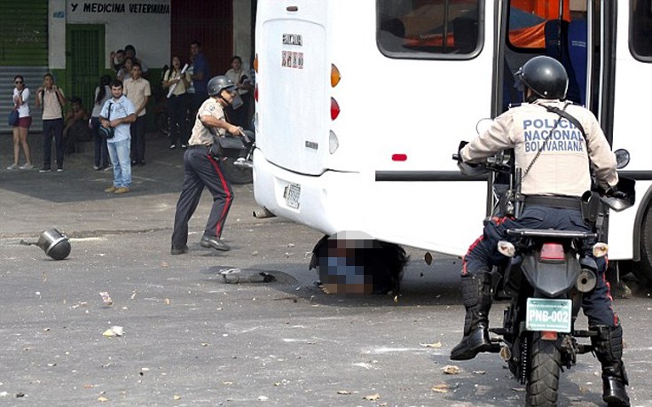 Τραγική κατάληξη είχε διαδήλωση στη Βενεζουέλα όπου δύο αστυνομικοί χτυπήθηκαν και παρασύρθηκαν από λεωφορείο που είχαν καταλάβει οι διαδηλωτές, με αποτέλεσμα να χάσουν τη ζωή τους.