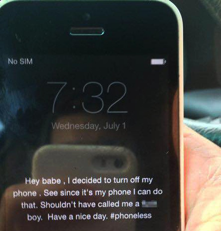 Αρχικά, σύμφωνα με το δημοσίευμα της Mirror, ζήτησε αυτοπροσώπως από την κοπέλα να του επιστρέψει το κινητό που της είχε αγοράσει καθώς ήταν δικό του. Εκείνη αρνήθηκε λέγοντάς του ότι δεν πρόκειται να μείνει χωρίς κινητό και θα του το έδινε μόνο όταν θα έπαιρνε ένα καινούριο. Ακολούθησε ανταλλαγή μηνυμάτων στα οποία από τη μία ο νεαρός ζητούσε τη συσκευή πίσω, καθώς την είχε πληρώσει ακριβά και δεν το άξιζε και εκείνη του έλεγε ότι της το έκανε δώρο και δεν επρόκειτο να το επιστρέψει.