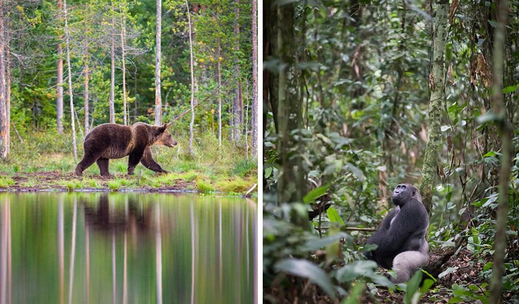 Ο Burrard-Lucas δεν νοιάζεται αν θα βρεθεί αντιμέτωπος με εξαγριωμένους γορίλλες στο Κονγκό ή αν θα μείνει στα παγωμένα βουνά της Αιθιοπίας για εβδομάδες περιμένοντας κάποιον μοναχικό λύκο.