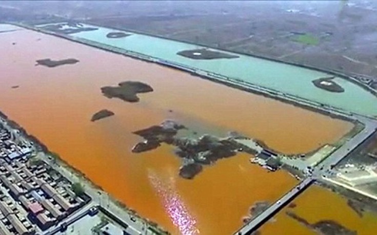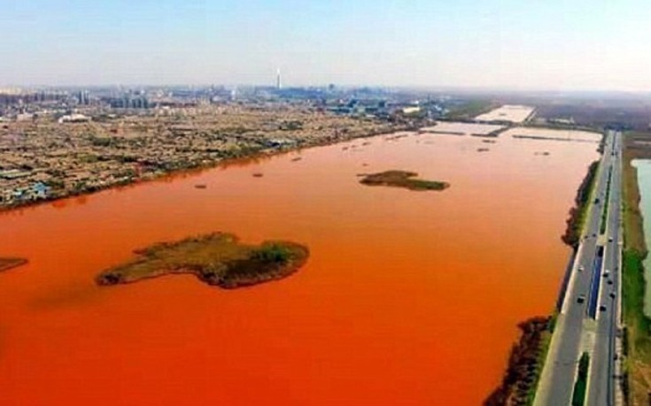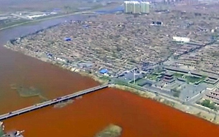 Άλλο χρώμα πήρε πριν τρεις μέρες μέρος του ποταμού Zhongting, στα βόρεια της Κίνας, και πιστεύεται πως τα νερά «μάτωσαν» εξαιτίας παράνομης απόρριψης βιομηχανικών αποβλήτων.