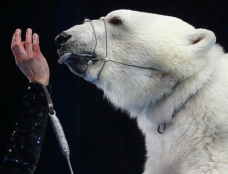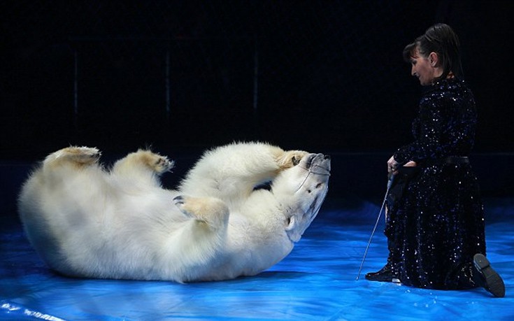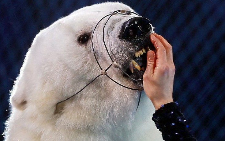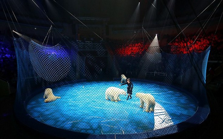 Θλίψη και εξευτελισμός: με αυτές τις δύο λέξεις θα μπορούσε να συνοψιστεί το θέαμα υπέροχων κι επιβλητικών πολικών αρκούδων με σιδερένια φίμωτρα να εξαναγκάζονται σε διάφορα αφύσικα «νούμερα» σε ρωσικό τσίρκο.