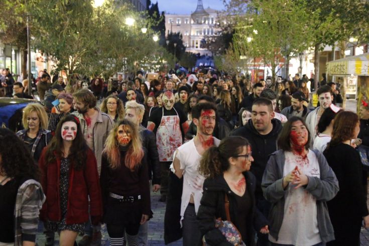 Ζόμπι και πλάσματα αλλόκοσμα ανταποκρίθηκαν στο κάλεσμα του #zombiethrillerparty και βρέθηκαν στην Ερμού και το Μοναστηράκι. Όπως αναφέρεται στη σελίδα του 80's Zombie Walk Athens στο Facebook, το «zombie walk» ξεκίνησε από την Αμερική το 2001 (Sacramento, California) αλλά επεκτάθηκε και στην Ευρώπη. Πρόκειται για μια παρέλαση «νεκροζωντανών», στην οποία πλήθος κόσμου ντύνεται, μακιγιάρεται σα ζόμπι και περιφέρεται στην πόλη, πειράζοντας και ανατριχιάζοντας τους περαστικούς!