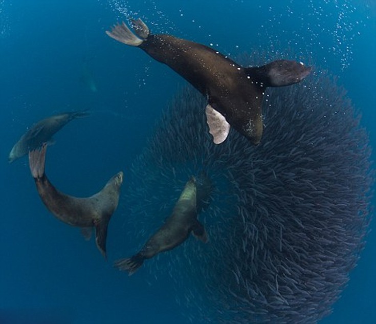 Εκπληκτικές φωτογραφίες μιας θεαματικής συνάντησης. Είναι συναρπαστική η ζωή κάτω από την επιφάνεια της θάλασσας και αυτό ακριβώς το χαρακτηριστικό της αποτυπώνεται με ένταση στις φωτογραφίες του εξερευνητή των ωκεανών William Winram. Ο δεινός δύτης βούτηξε στα νερά της προστατευόμενης περιοχής Cabo Pulmo στη Baja California στο Μεξικό, όταν ένα πολυπληθές κοπάδι ψαριών κολύμπησε σχηματίζοντας γύρω του μια δίνη. Ο 50χρονος βρισκόταν στην περιοχή αναζητώντας καρχαρίες στο πλαίσιο προγράμματος προστασίας τους αλλά φαίνεται πως το Ελ Νίνιο τους κράτησε σε πιο βαθιά νερά. Περιμένοντας τους μεγάλους θηρευτές, ωστόσο, τράβηξε αυτές τις καταπληκτικές φωτογραφίες. «Όλες οι φωτογραφίες τραβήχτηκαν με φυσικό φως και αποδεικνύουν τι μπορεί να συμβεί όταν οριοθετείς μια προστατευόμενη περιοχή και τη διαχειρίζεσαι αποτελεσματικά», δήλωσε ο Καναδός δύτης. «Είναι εντυπωσιακό να βλέπεις τις αλλαγές προς το καλύτερο στην περιοχή αλλά και το πώς ο ντόπιος πληθυσμός διαχειρίζεται, προστατεύει και ενισχύει την περιοχή αυτή». Πηγή: http://www.newsbeast.gr